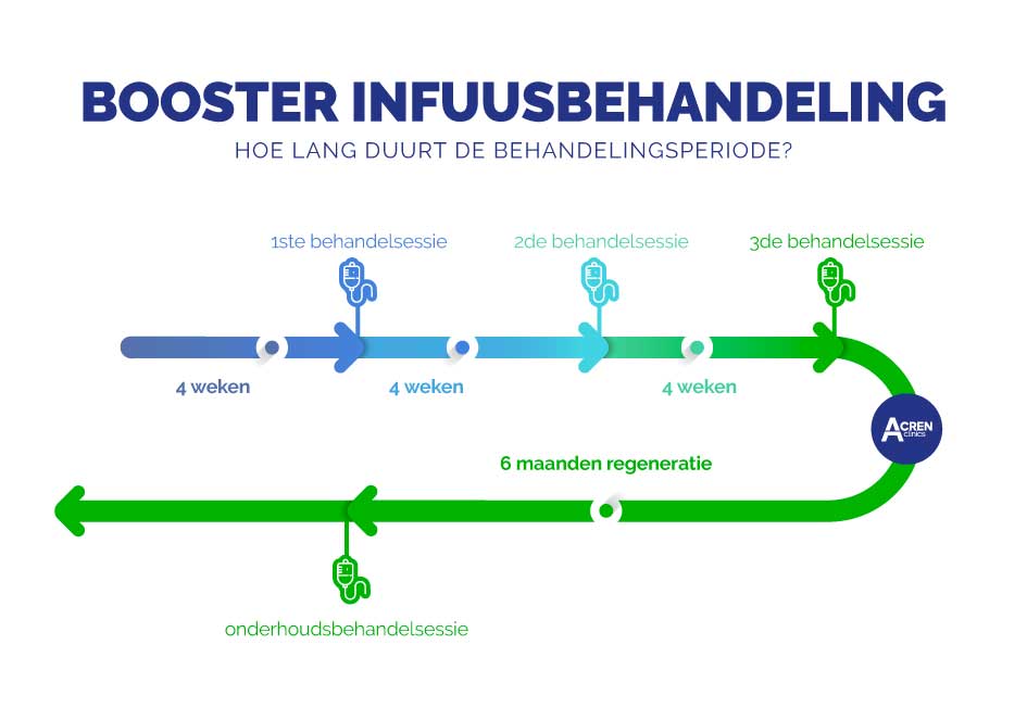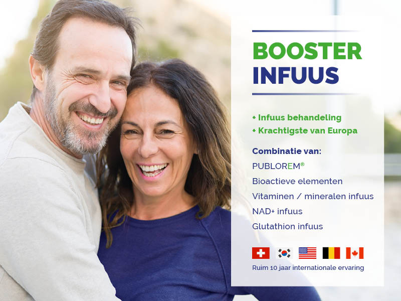 - BOOSTER infuus kost: € 665,- per behandelsessie, daar heb je er 12 van nodig om één jaar te overbruggen.
